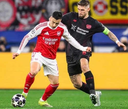 Arsenal’s 100% record in the Champions League this season has come to an end…after they were held to a 1-1 draw by Bayer Leverkusen in the first-leg of the last-16 this morning.